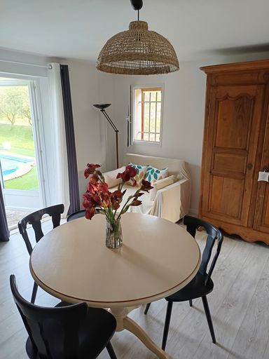 - Le gîte pour 1 à 2 personnes dispose d’une entrée indépendante avec terrasse , une cuisine équipée avec une plaque de cuisson vitrocéramique , un micro-onde , un réfrigérateur- congélateur, un lave linge et divers petits électroménagers , une belle armoire provençale , un canapé convertible 1 place , TV réception TNT SAT et connexion 4 G WIFI gratuit , une chambre et sa salle d’eau (douche, lavabo, wc) , une seconde terrasse donnant directement sur la piscine privée avec un bassin de 8 m x 4 m , promettant d'agréables soirées d'été et d'un petit déjeuner au lever du soleil . Calme et nature au rendez vous .