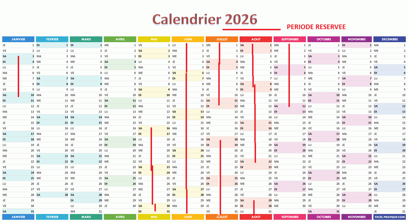 Les réservations se font du samedi au samedi sauf pour les courts séjours avec arrivée à votre convenance